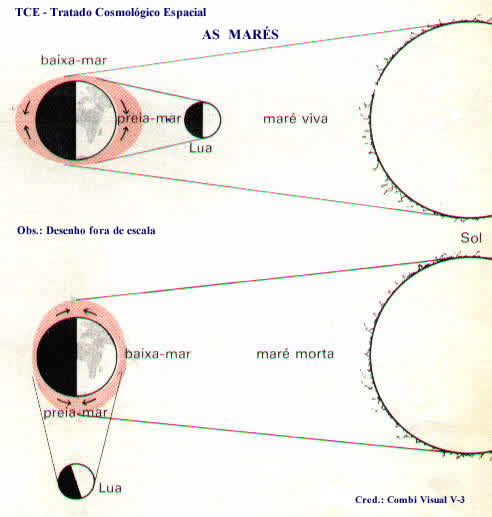 - Se as marés são provocadas pela “atração gravitacional” da Lua, como poderia haver duas marés por dia, sendo uma alta do lado em que a Lua está presente, e outra semelhante do lado oposto da Terra na mesma direção do alinhamento?